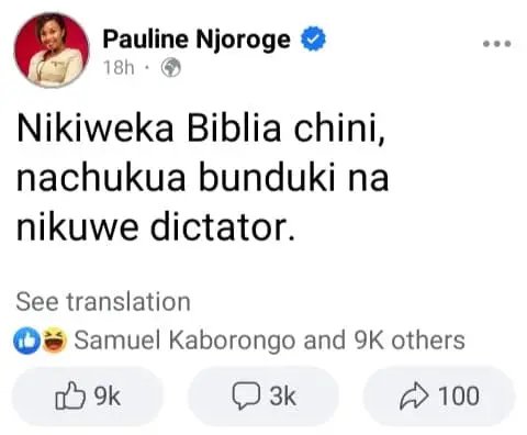 Under this post, Pauline Njoroge is calling William Ruto a dictator. This could be the most reason which lead to her arrest.