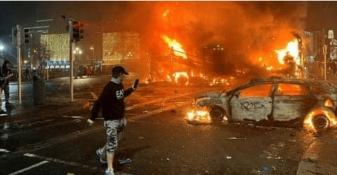 Dublin witnessed a night of chaos and destruction as torched vehicles and shop looting erupted in response to what police described as an “extraordinary” level of violence outside a school. The incident unfolded when a group forcibly breached a police cordon in an area where a knife attack left three young children and a woman injured.